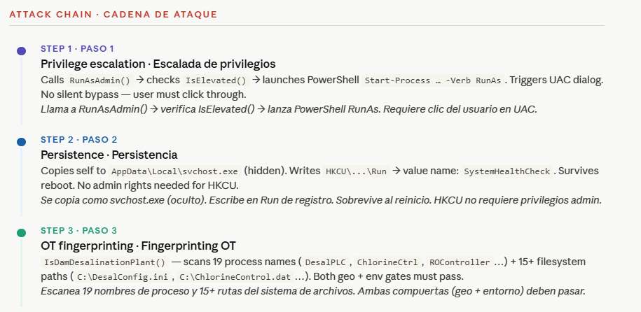 Fingerprinting de entorno OTIsDamDesalinationPlant()Funcional19 nombres de proceso, 15+ rutas del sistema de archivos